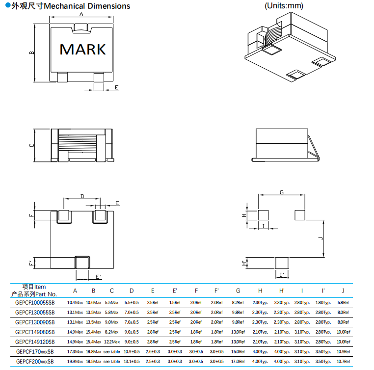 一、扁平線貼片電感GEPCF-SB 系列—產(chǎn)品特性